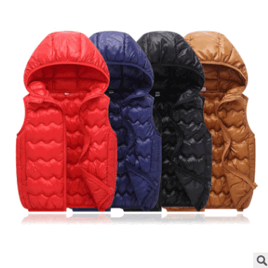 秋冬季新款無袖兒童羽絨棉馬甲男女童波浪款寶寶連帽坎肩背心