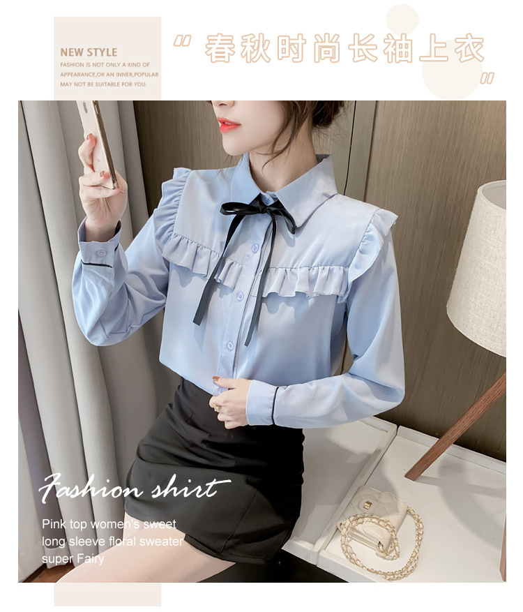 春季女裝2021年新款雪紡襯衫設計感小眾長袖蝴蝶結法式溫柔風上衣