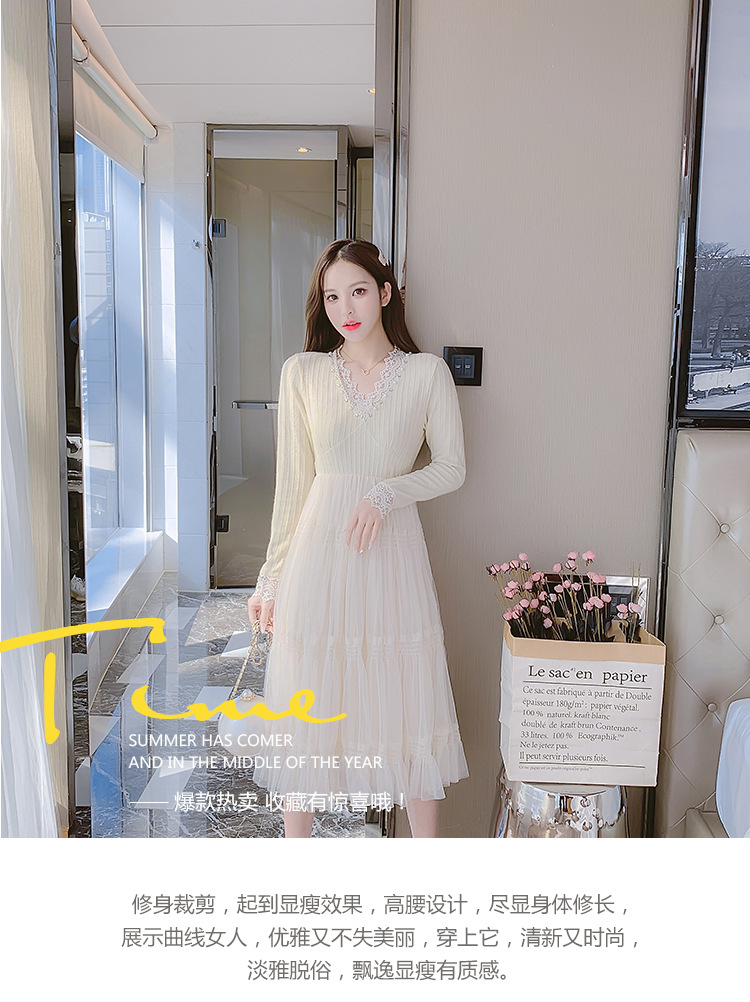 輕奢名媛長袖連衣裙子女裝春裝2021年新款法式收腰顯瘦氣質打底裙