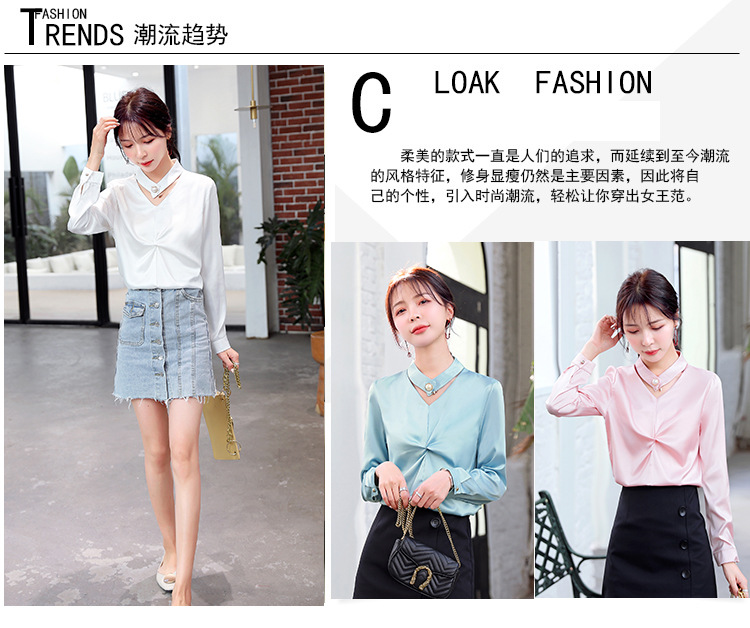 長袖女上衣春秋時尚洋氣設計感2021年新款內搭小衫氣質百搭雪紡衫
