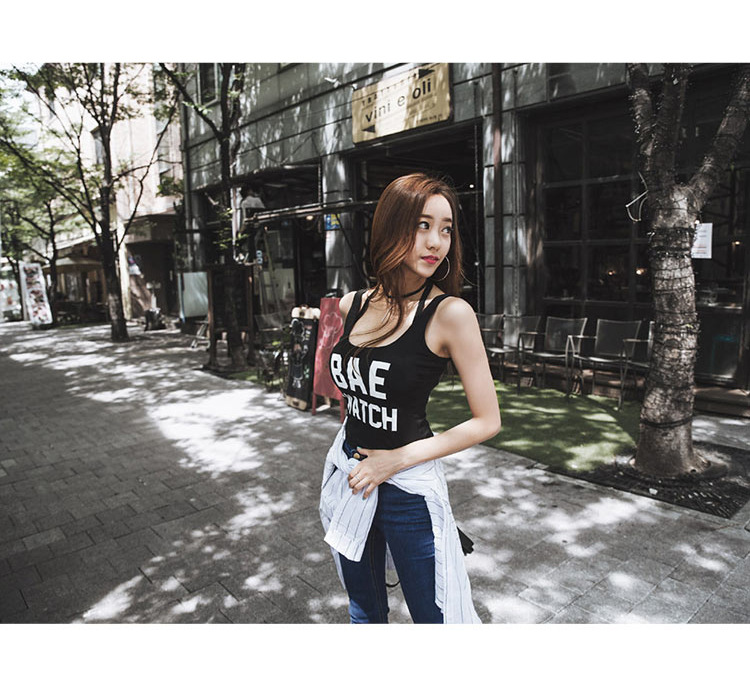 女人味低胸夜店女裝字母T恤女夏緊身顯瘦打底上衣性感吊帶背心女