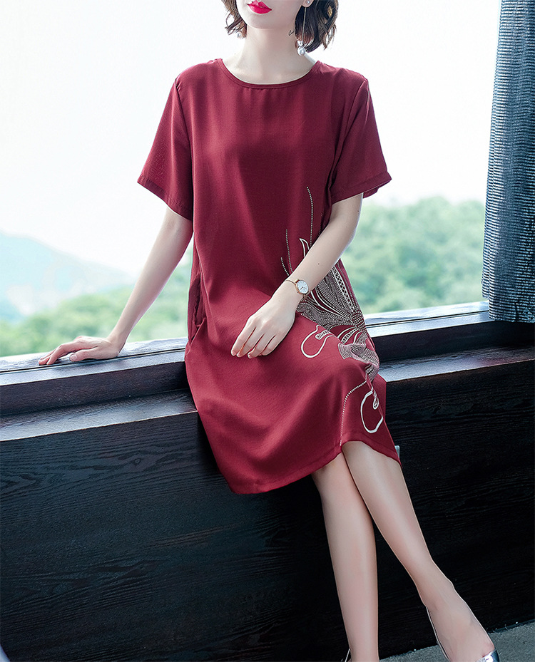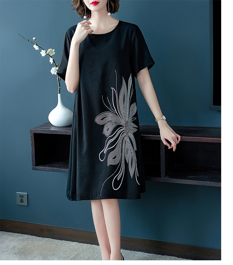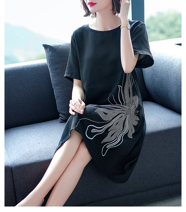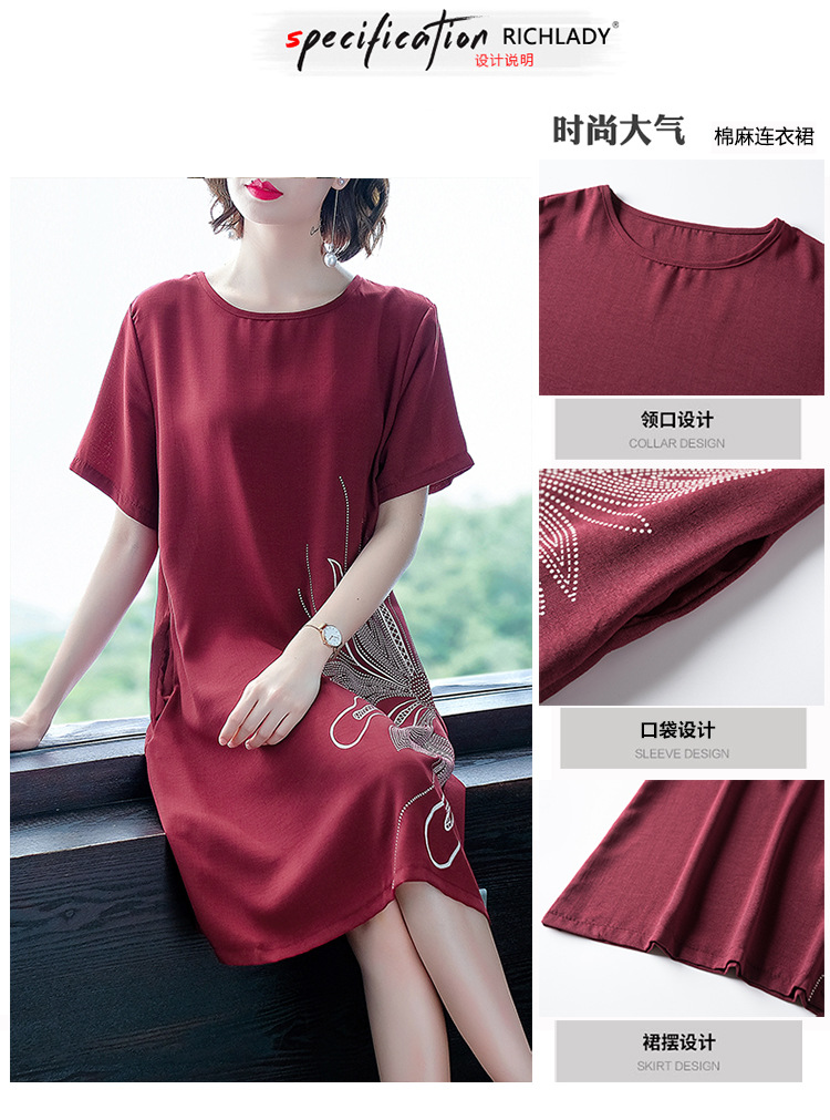 胖女人大碼女裝復古民族風棉麻連衣裙2019夏季新款寬松口袋印花裙