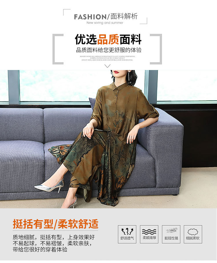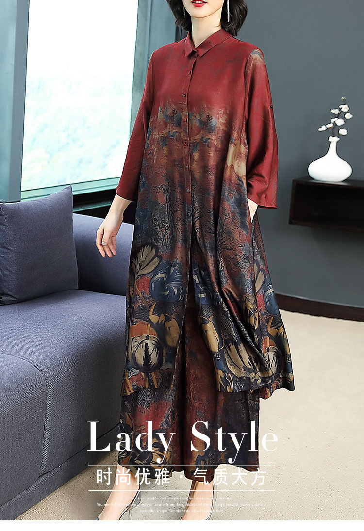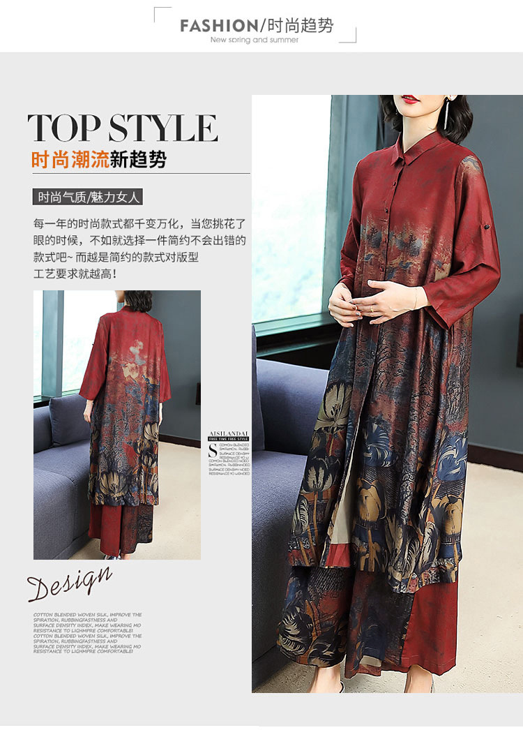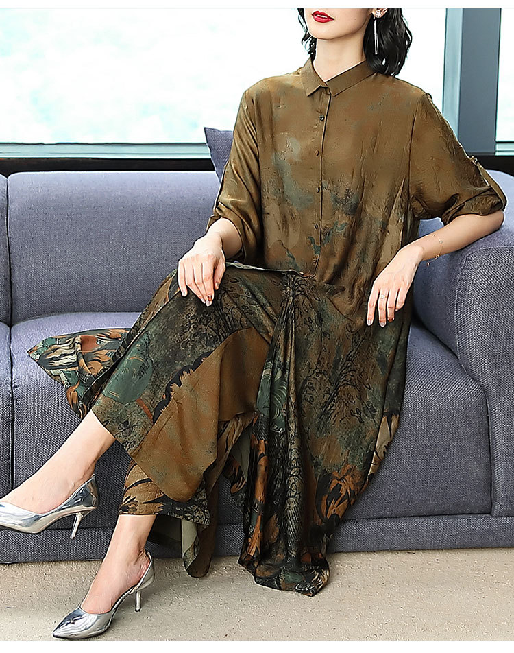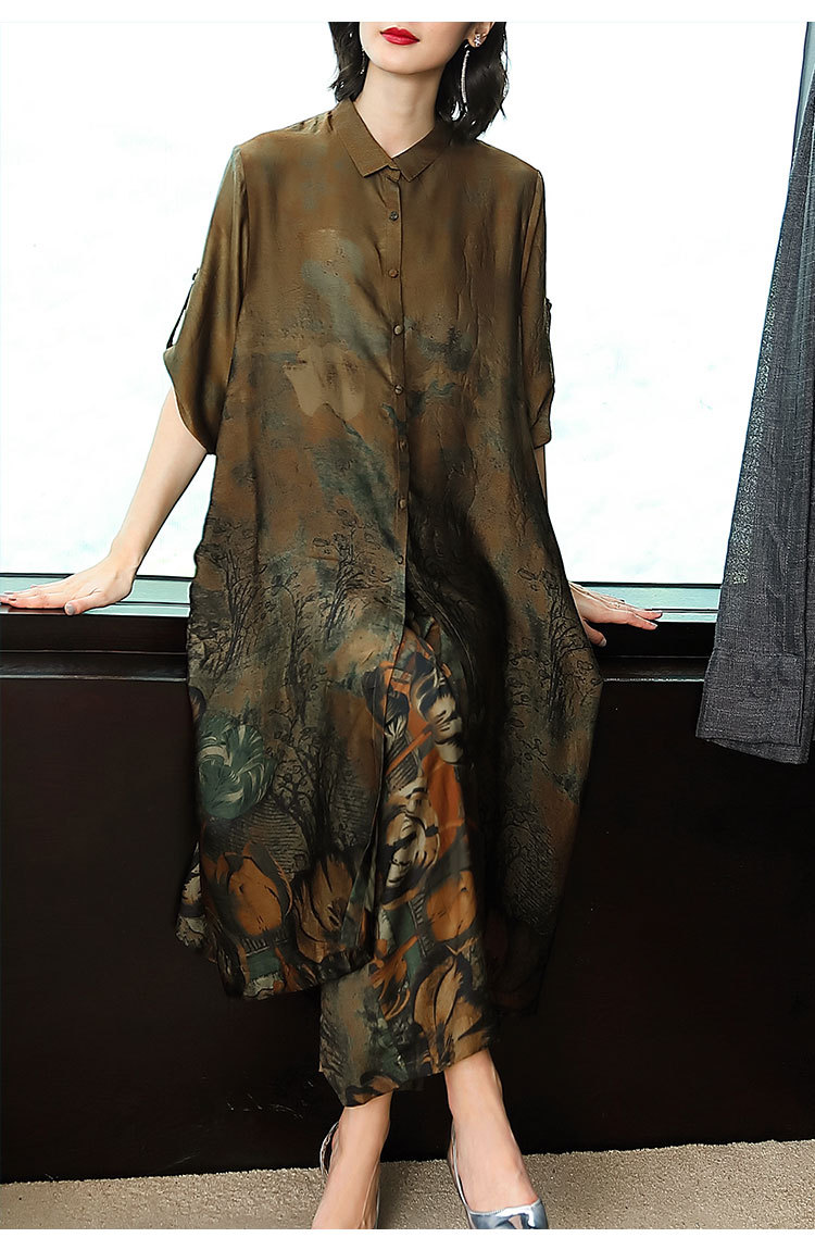 春夏闊太太兩件套大碼民族風開衫上衣+仿香云紗九分褲寬腿褲套裝