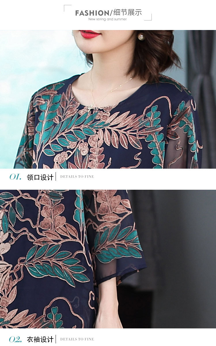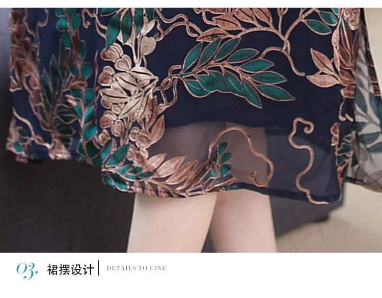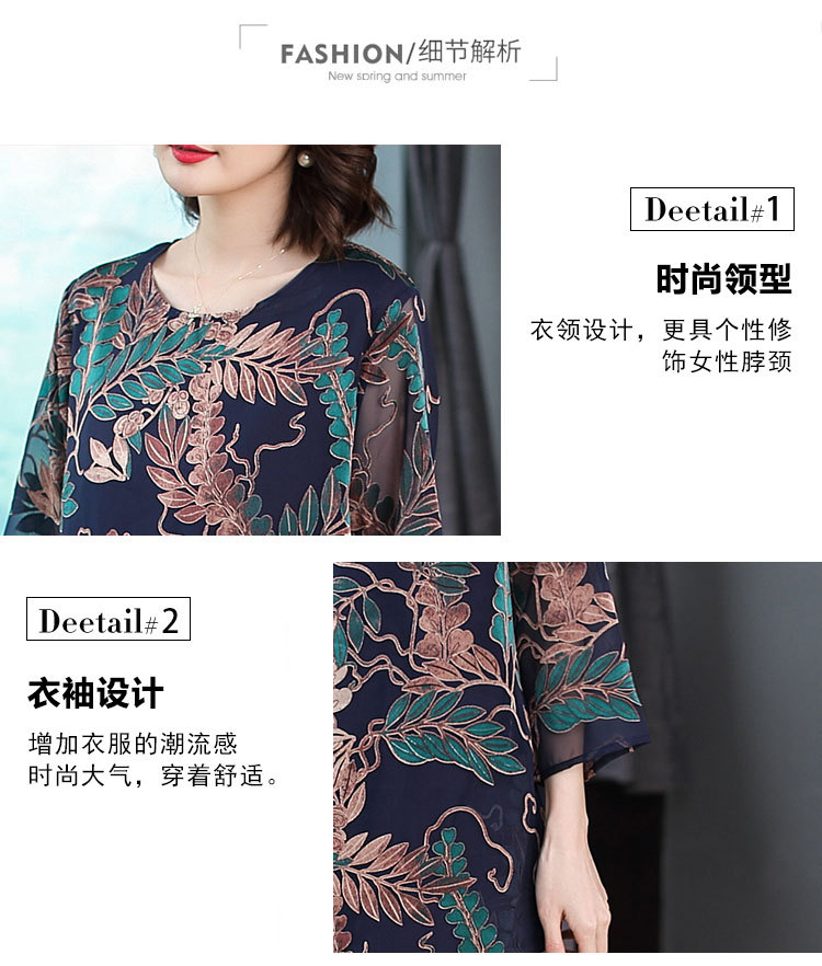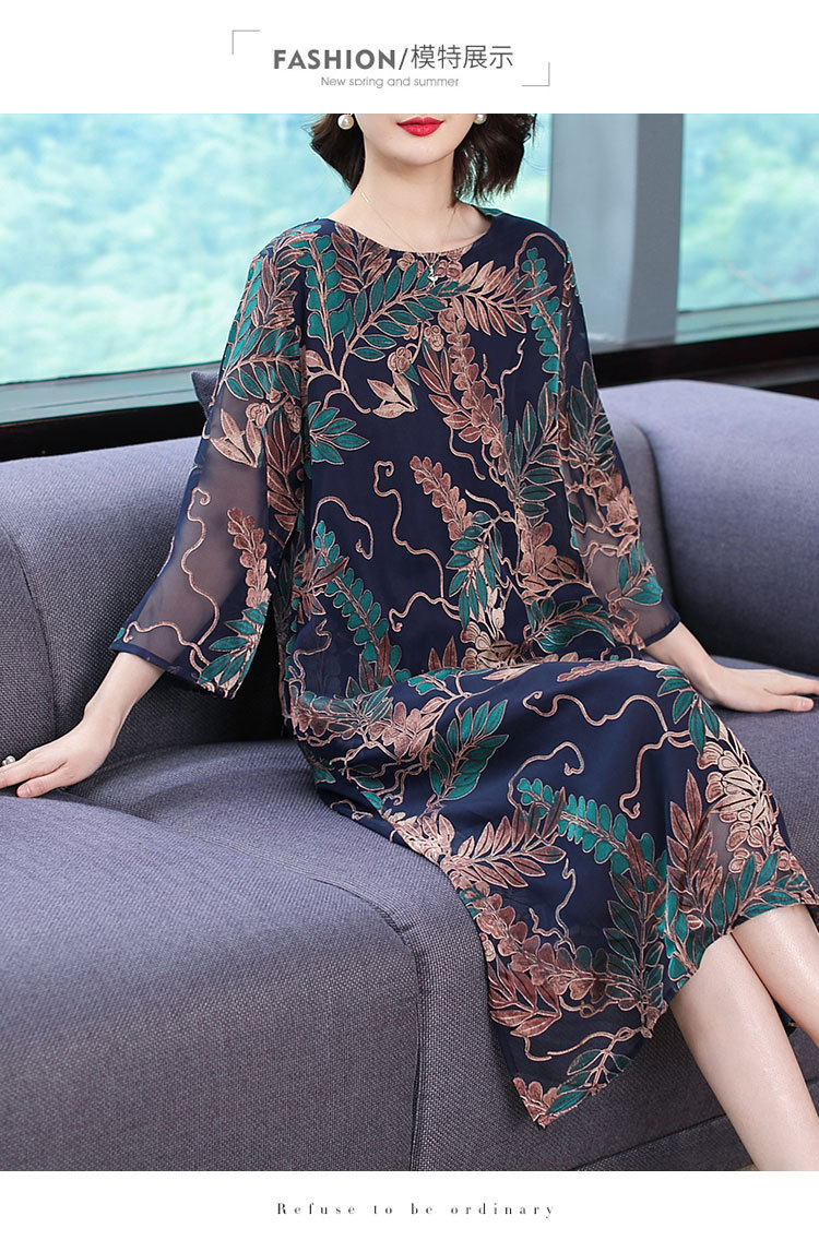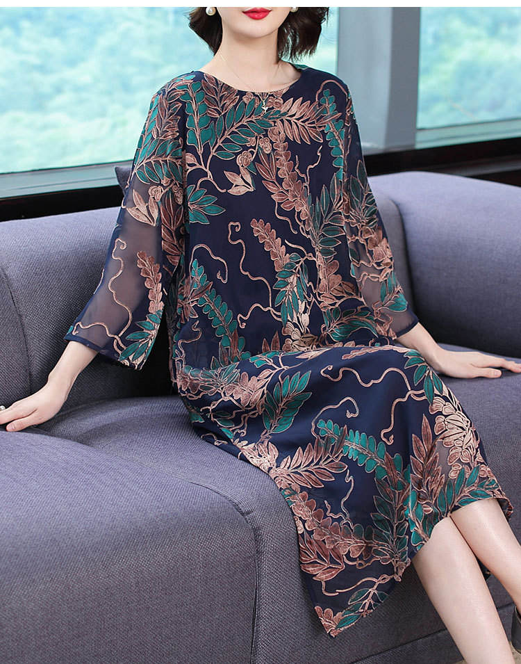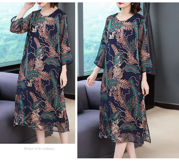 2019春夏新款復古媽媽裝印花連衣裙女氣質中長款寬松顯瘦過膝裙子