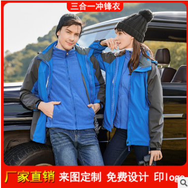 戶外厚款沖鋒衣定制印logo 防風防水可拆卸三合一男女同款登山服
