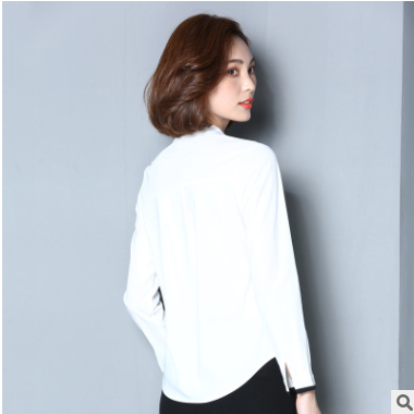 2019夏季新品白襯衫女長袖百搭襯衣v領(lǐng)職業(yè)寬松韓版雪紡衫上衣寸