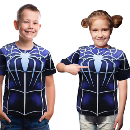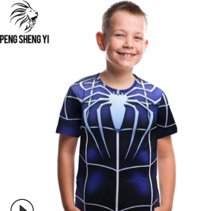 廠家直銷 歐美跨境童裝t恤 蜘蛛3d數碼印花圓領大童t恤女童短袖