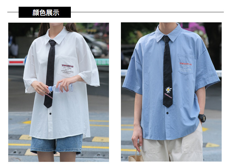 【配領帶】2021夏裝新款全棉日系校園情侶裝襯衫短袖學生外穿襯衣