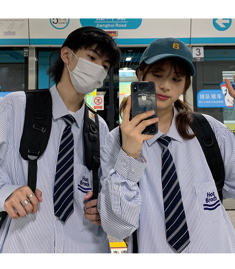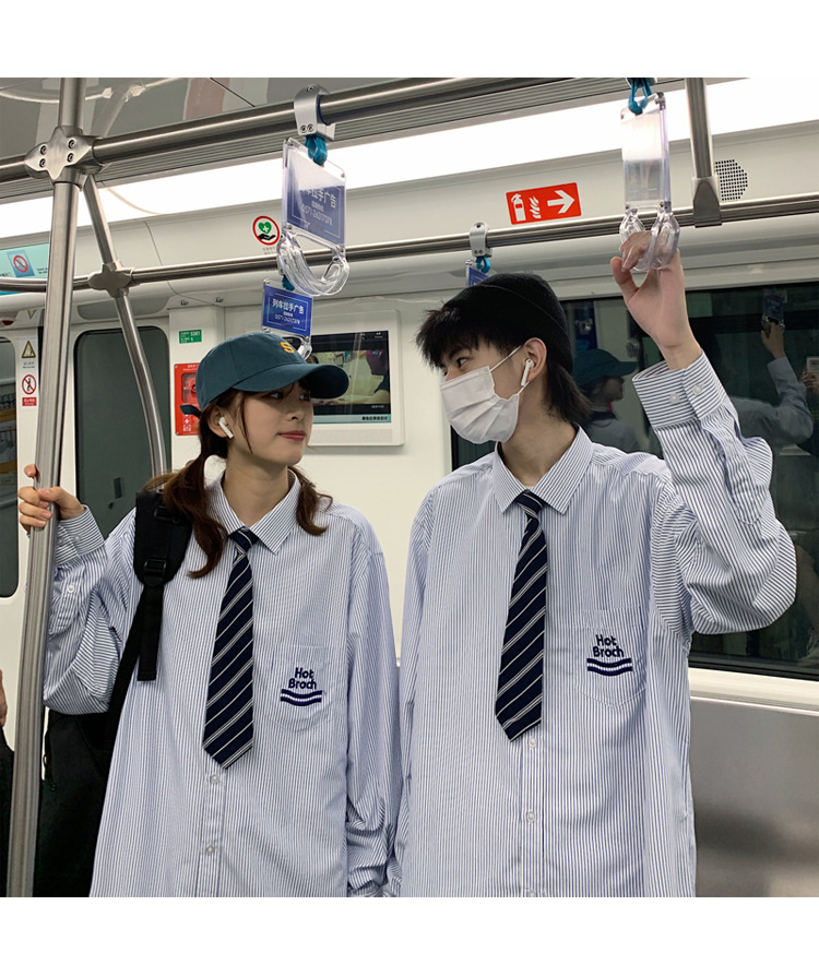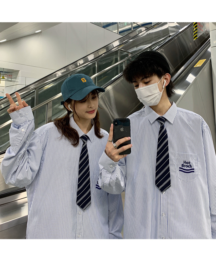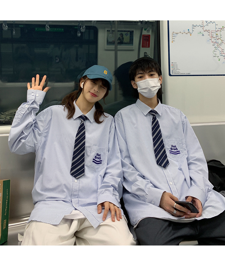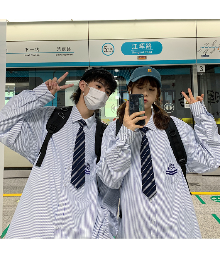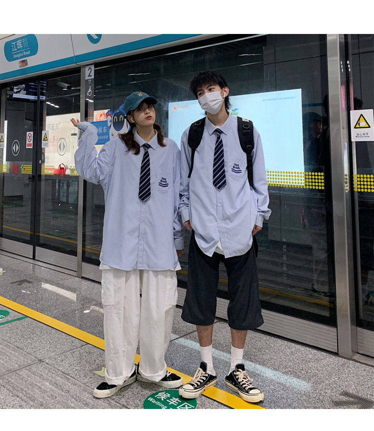 2021春夏裝新款dk長袖襯衫男條紋情侶裝jk襯衣日系港風學生制