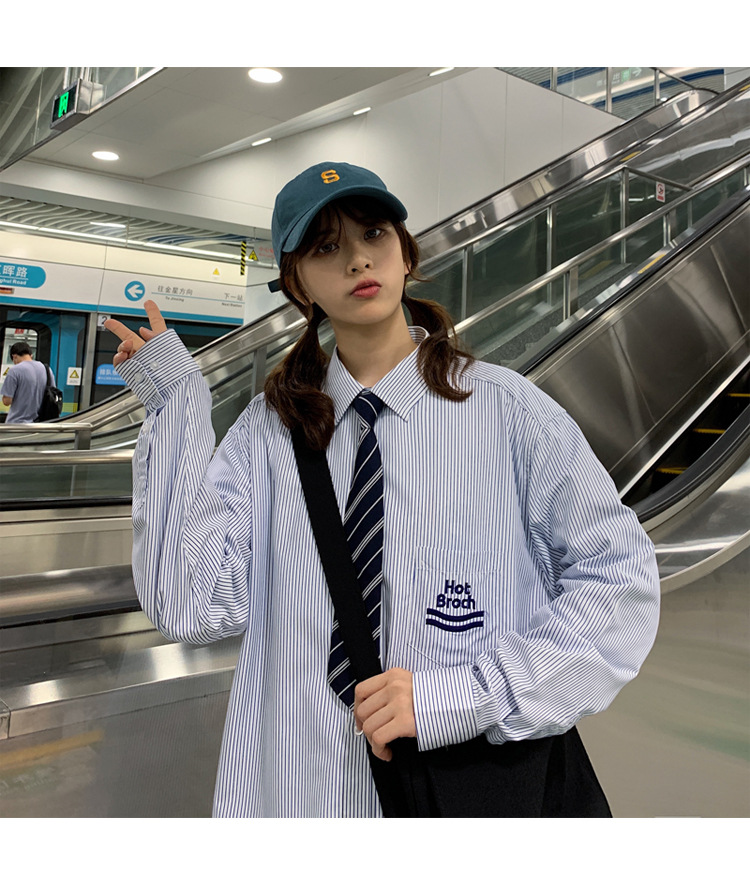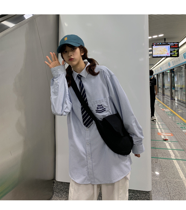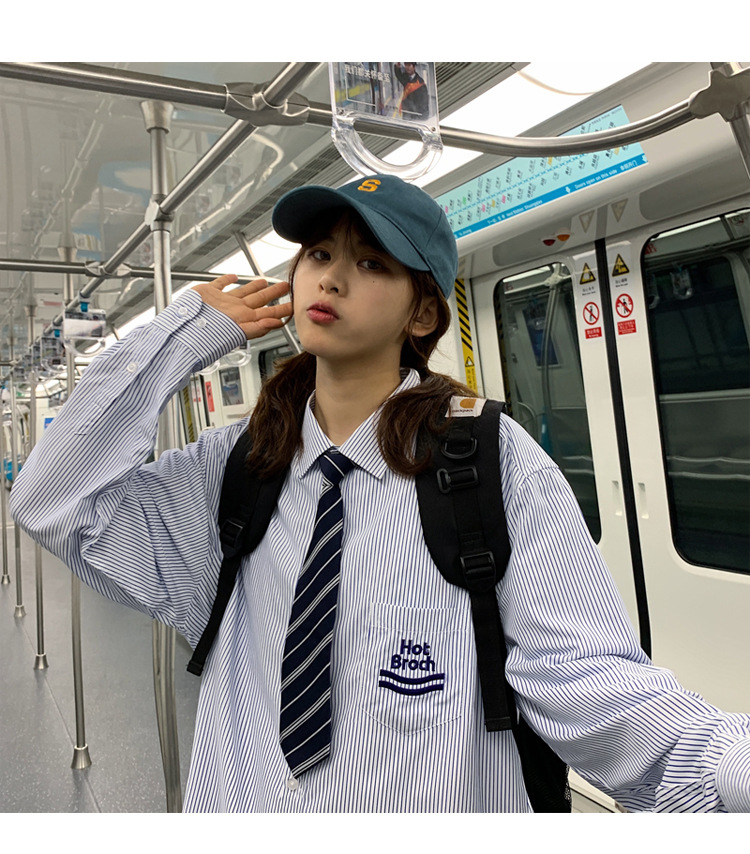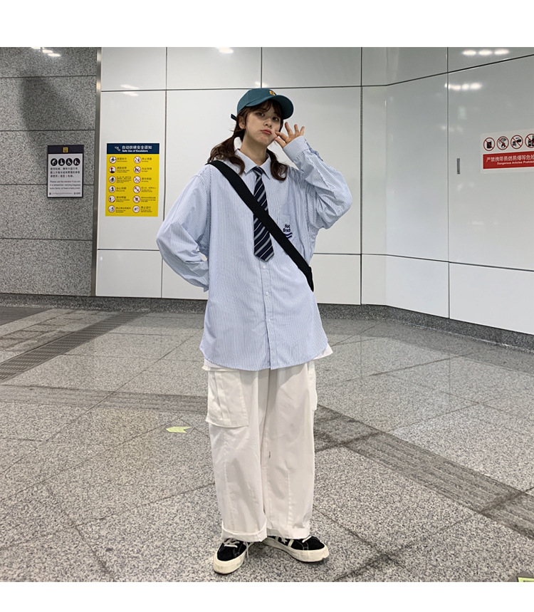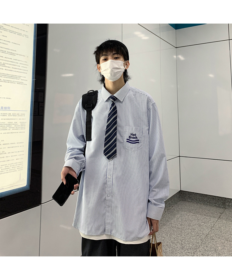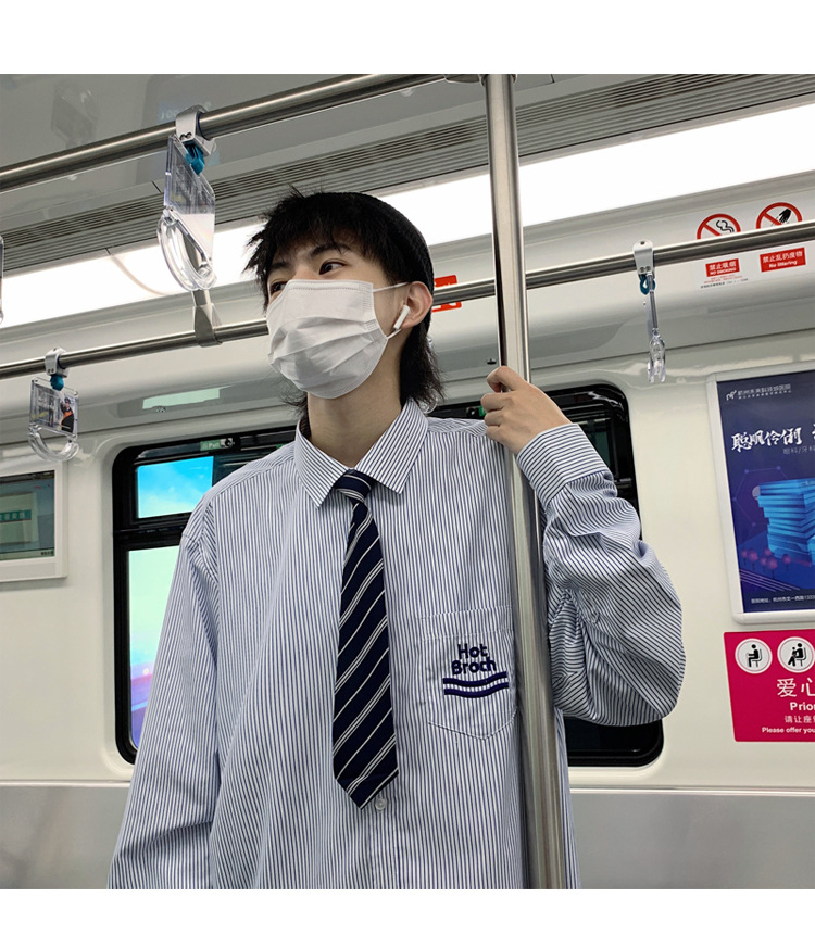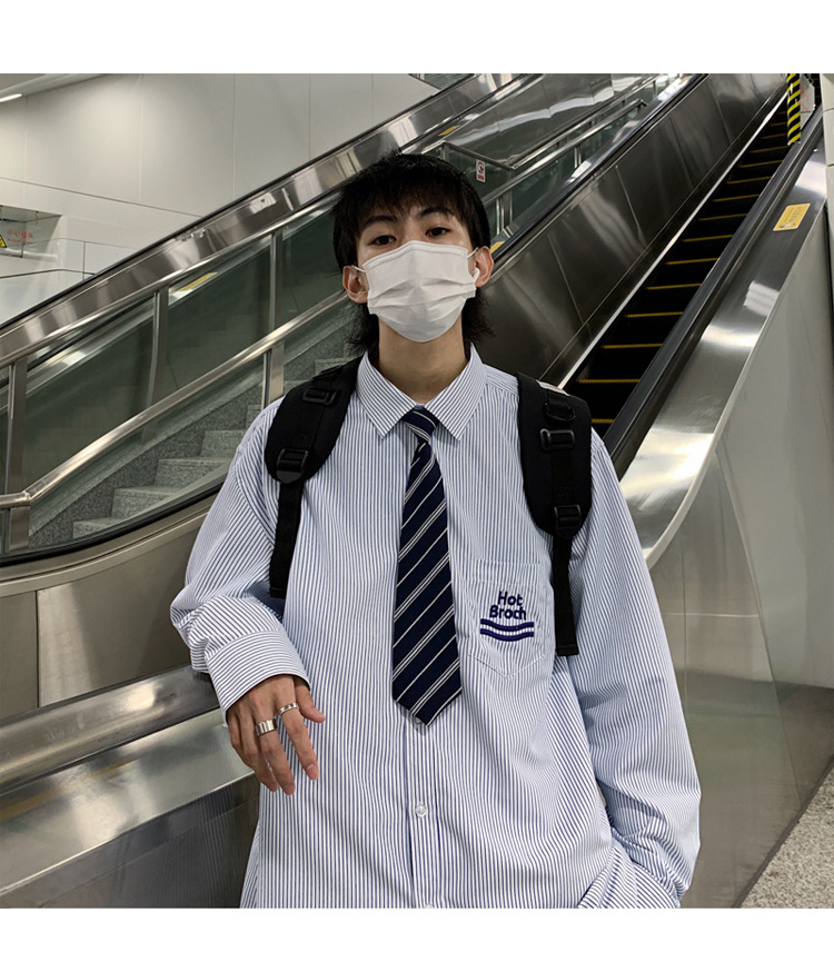 2021春夏裝新款dk長袖襯衫男條紋情侶裝jk襯衣日系港風學生制