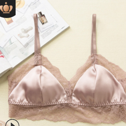 批發三角杯調整型桑蠶絲真絲性感法式文胸無鋼圈薄款女士蕾絲內衣