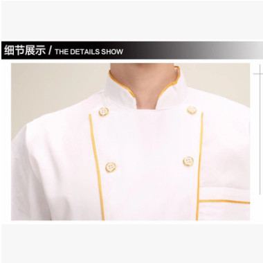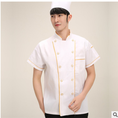 2018夏季新款金邊金扣半袖酒店工作服飯店廚師服餐廳食堂短袖