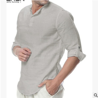 2019新款男士休閑立領純色洗水皺春秋款長袖襯衣