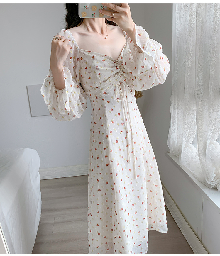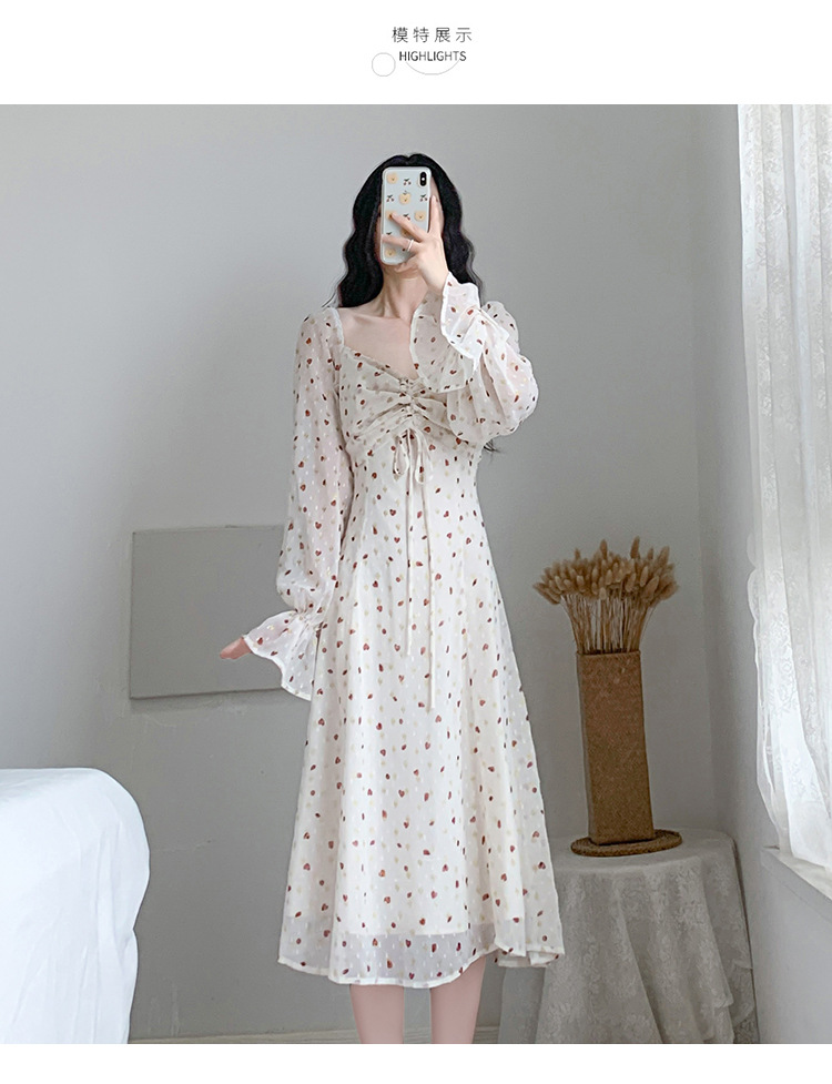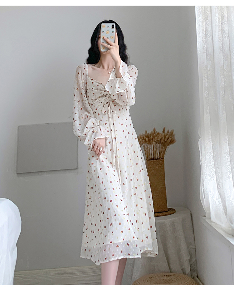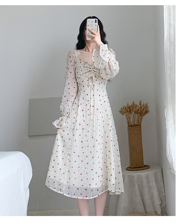 溫柔風碎花雪紡連衣裙女2021早春V領喇叭袖高腰顯瘦超仙甜美長裙
