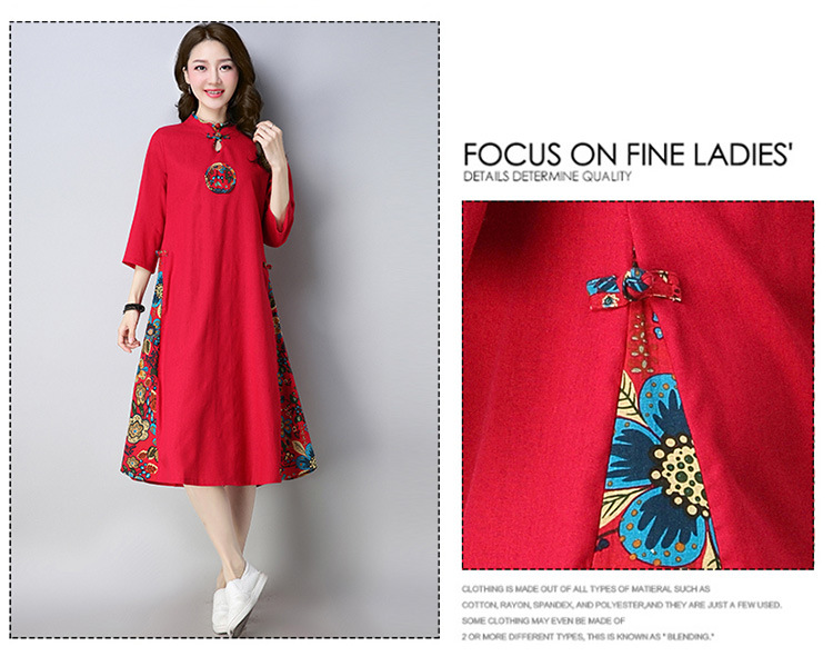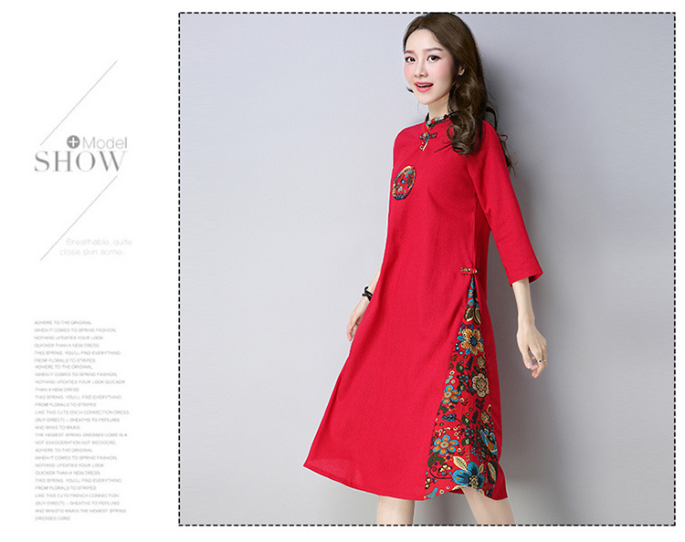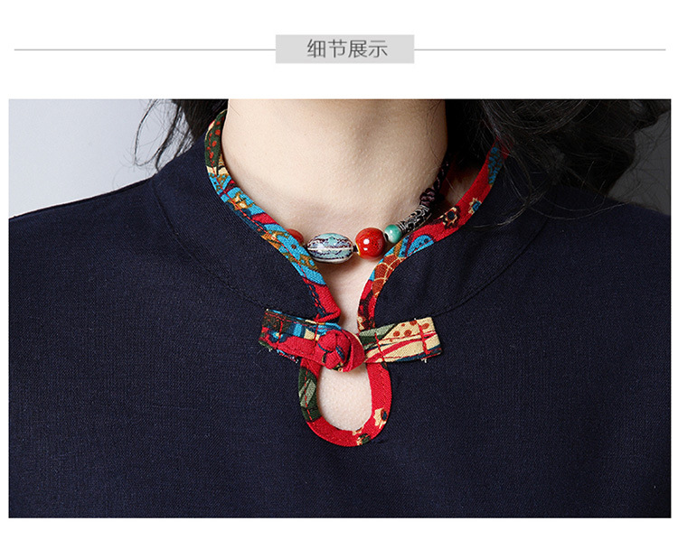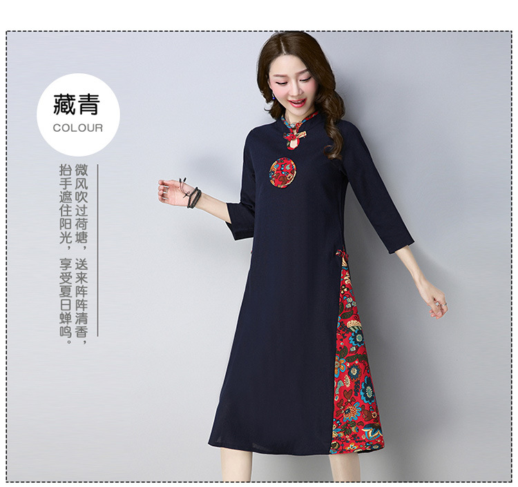 民族風立領盤扣七分袖棉麻連衣裙女裝寬松中長款2019秋季新款實拍
