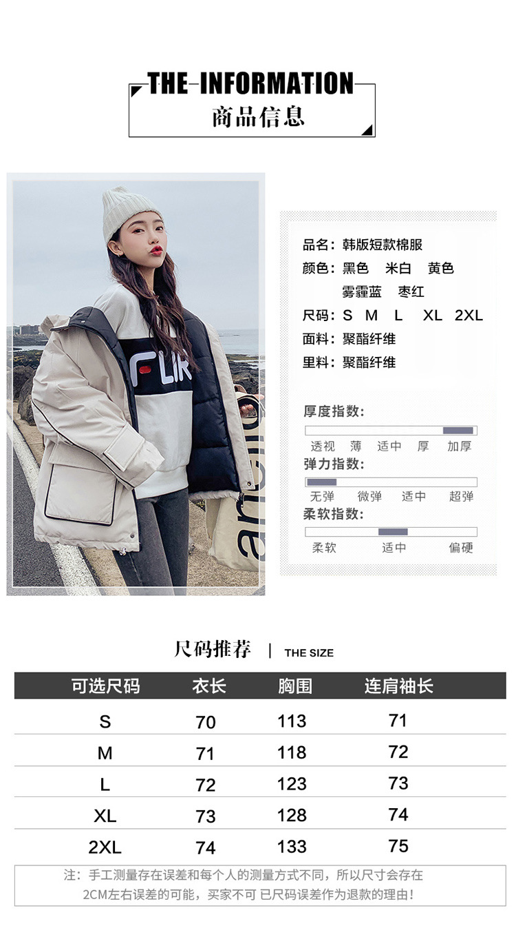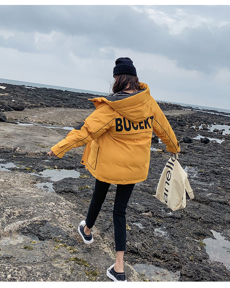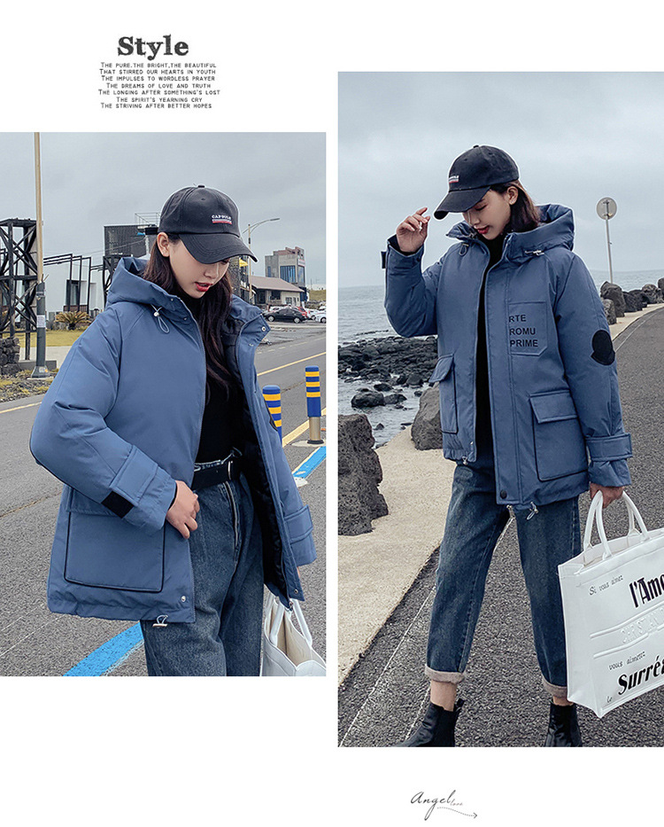 2019秋冬新款網紅休閑bf羽絨棉服女韓版ins工裝外套連帽棉衣
