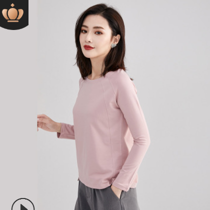 2020春季女裝新款上衣春秋韓版圓領寬松長袖t恤女純色百搭打底衫