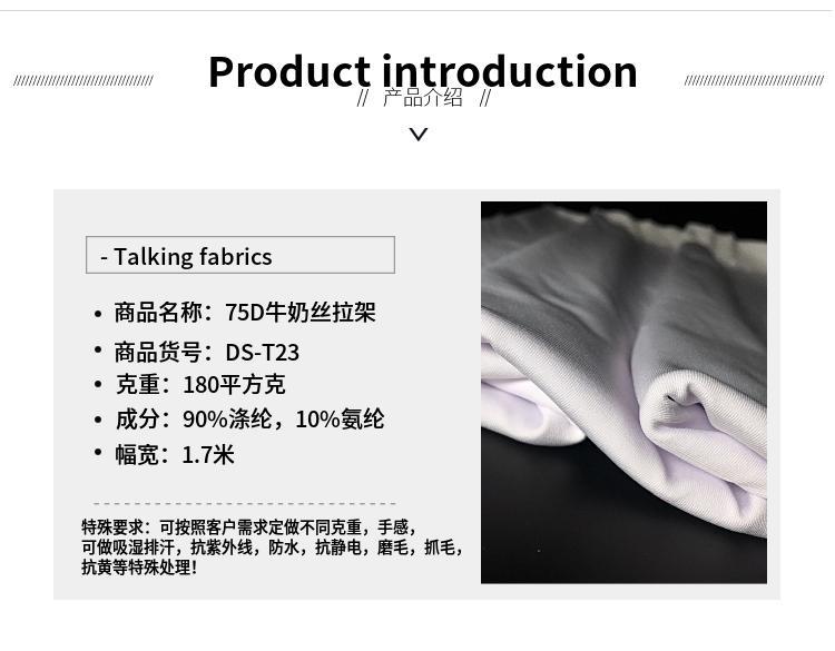 75D*30D高彈牛奶絲拉架瑜伽服面料運動速干緊身衣健身服針織布料