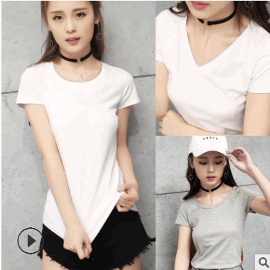 95棉夏裝上衣短袖t恤女純色2018修身打底衫半袖白色韓版女士體恤