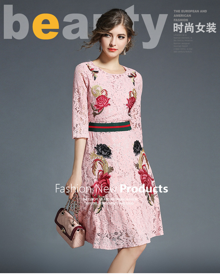 實(shí)拍新款復(fù)古宮廷風(fēng)女裝重工刺繡蕾絲連衣裙批發(fā)