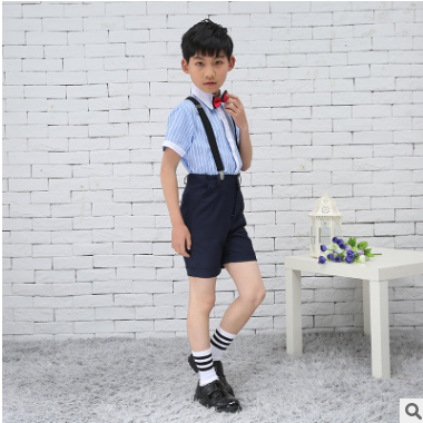 【夏季套裝男】2019夏季新款大童短款男童套裝英倫范修身男童套裝