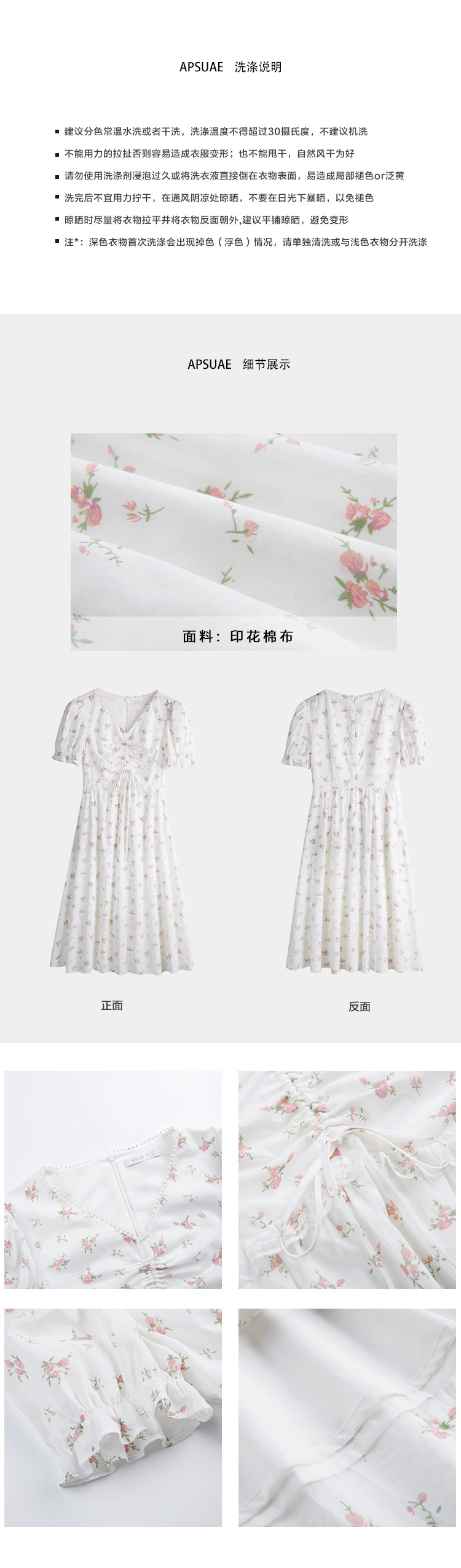 白水女 白色碎花初戀連衣裙女夏氣質薄款設計感蕾絲邊v領桔梗長裙