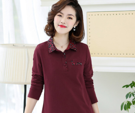 19年新款時尚豹紋棉T恤氣質通勤中年女裝寬松顯瘦媽媽裝打底衫