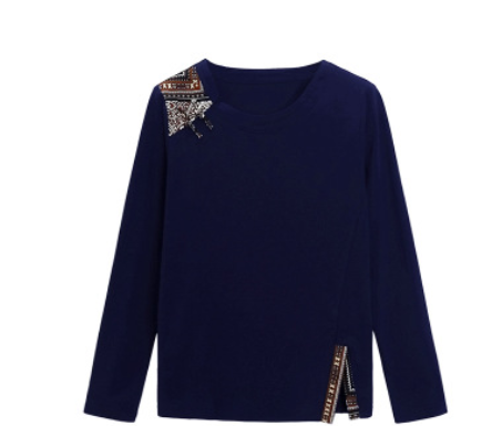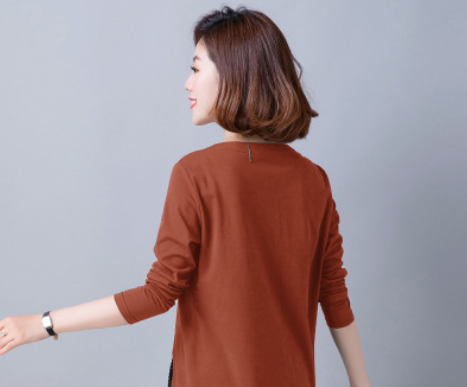 媽媽裝新款棉T恤19年秋季長袖民族風(fēng)時尚打底衫休閑寬松中年女裝