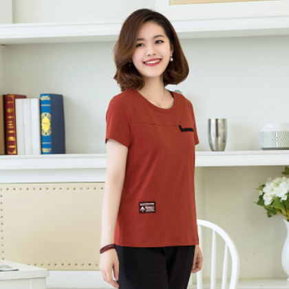 媽媽裝上衣2018年新款夏裝中老年純棉休閑T恤衫短袖圓領(lǐng)打底衫