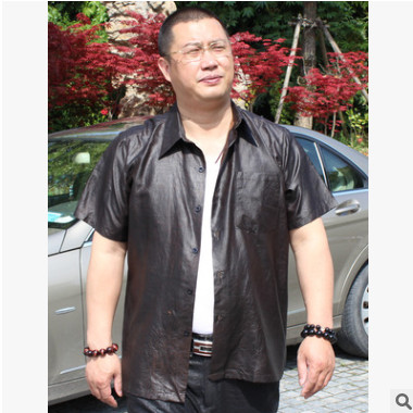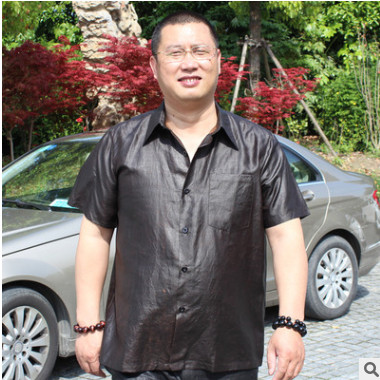 100%桑蠶絲真絲香云紗上衣男裝 男士短袖真絲襯衫原創設計正品