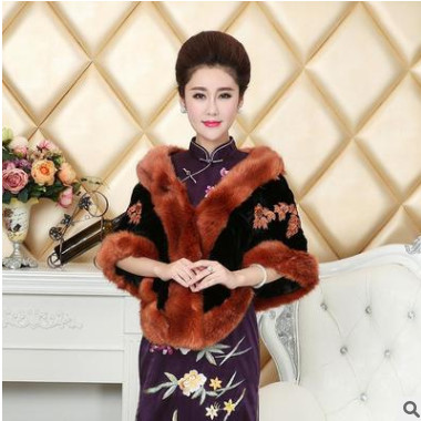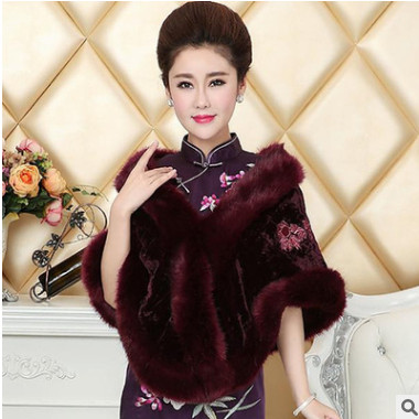 2016新款旗袍披肩 冬裝加厚斗篷 真絲絨毛邊高端媽媽裝婚禮服