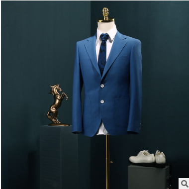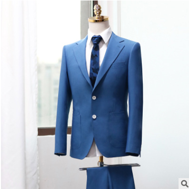 男士西服套裝藍色修身商務休閑西裝新郎結婚影樓禮服men suits