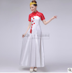 新款2018成人大合唱演出服裝長裙蕾絲合唱禮服古箏舞臺表演服女