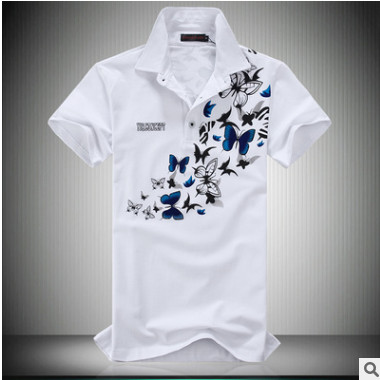 精品學院風男式短袖POLO衫 青年蝴蝶印花短袖T恤 大碼男士polo衫