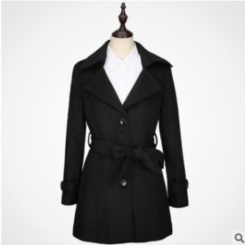 現貨黑色毛呢大衣冬季首選中長款修身可來圖定制長期供應
