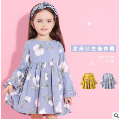 AS外貿(mào)童裝2019秋裝新款中大童時尚蝴蝶印花連衣裙長袖女童公主裙