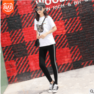 夏季潮流新款薄款棉質(zhì)女褲 側(cè)邊貼條修身顯瘦鉛筆褲 韓版緊身長褲