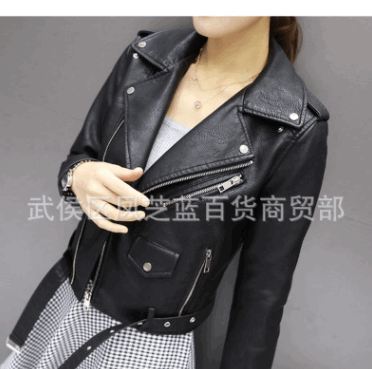 2018秋冬新款女士皮衣外套韓版修身機車皮衣夾克時尚女裝批發(fā)