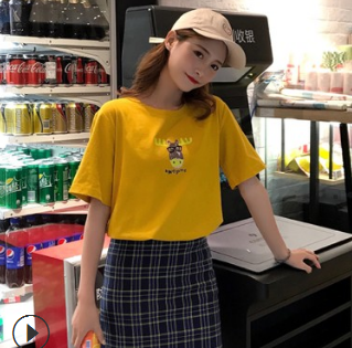 實(shí)拍100%純棉春夏新款情侶短袖女2019韓版寬松學(xué)生半袖圓領(lǐng)t恤
