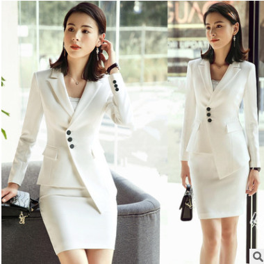 2018新款職業套裝女時尚不對稱西服外套修身顯瘦闊腳褲白領工作服