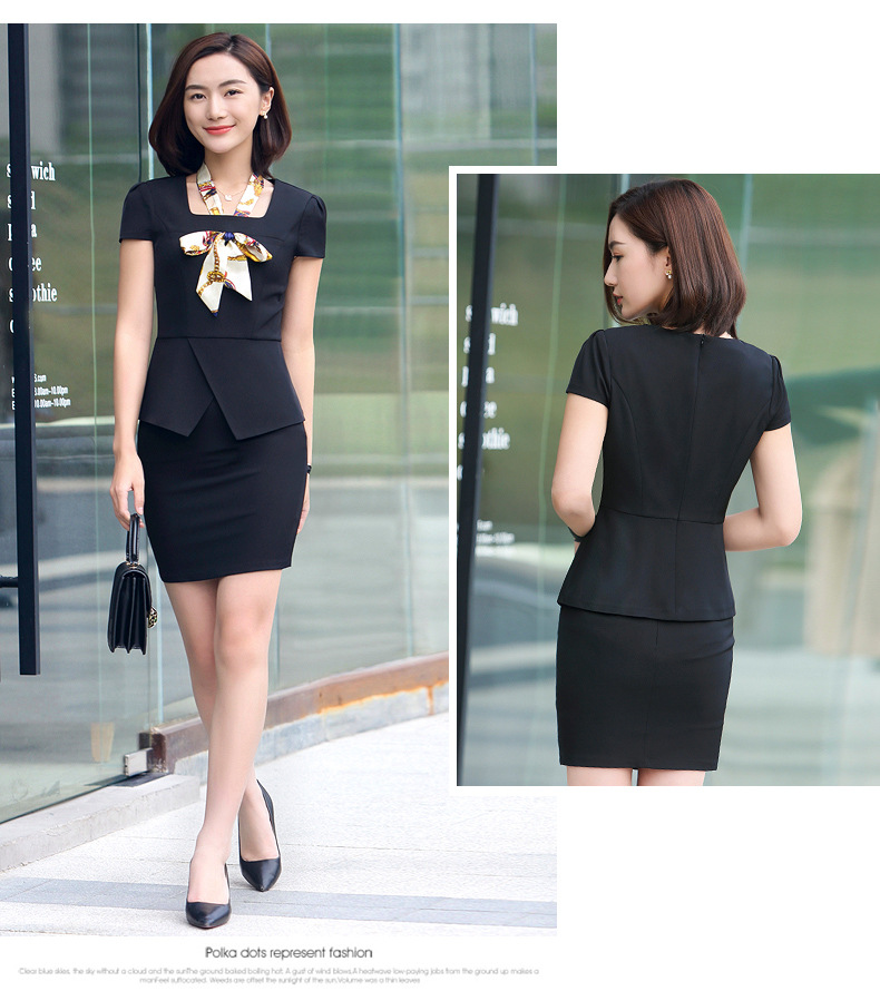 夏季新款職業套裙女酒店前臺短袖純色美容師工作服銷售工衣兩件套