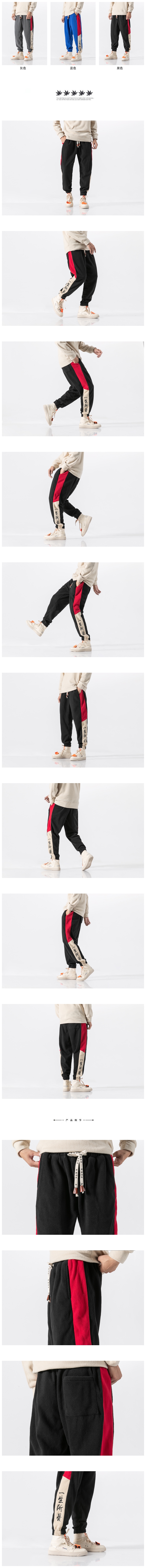 2019新款冬裝中國風搖粒絨男收口吊襠褲寬松文字百搭個性潮流休閑