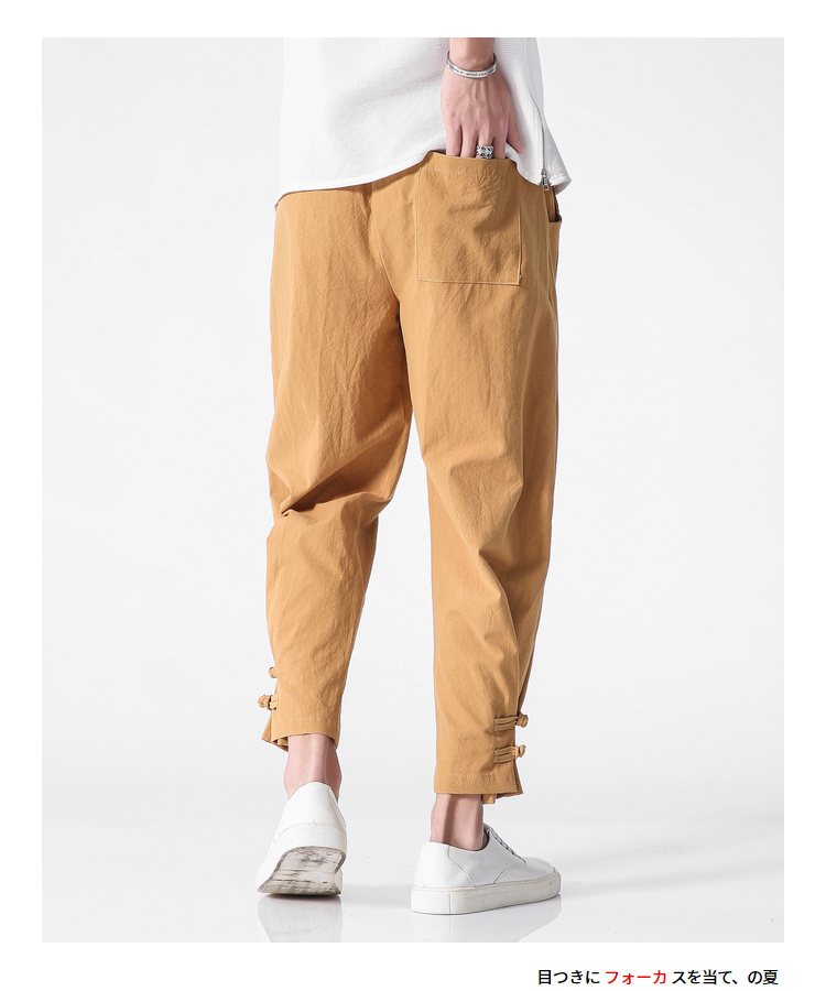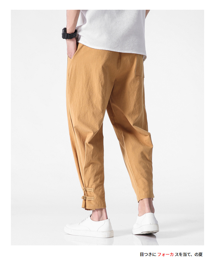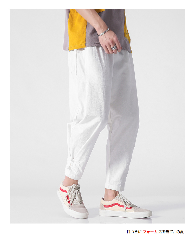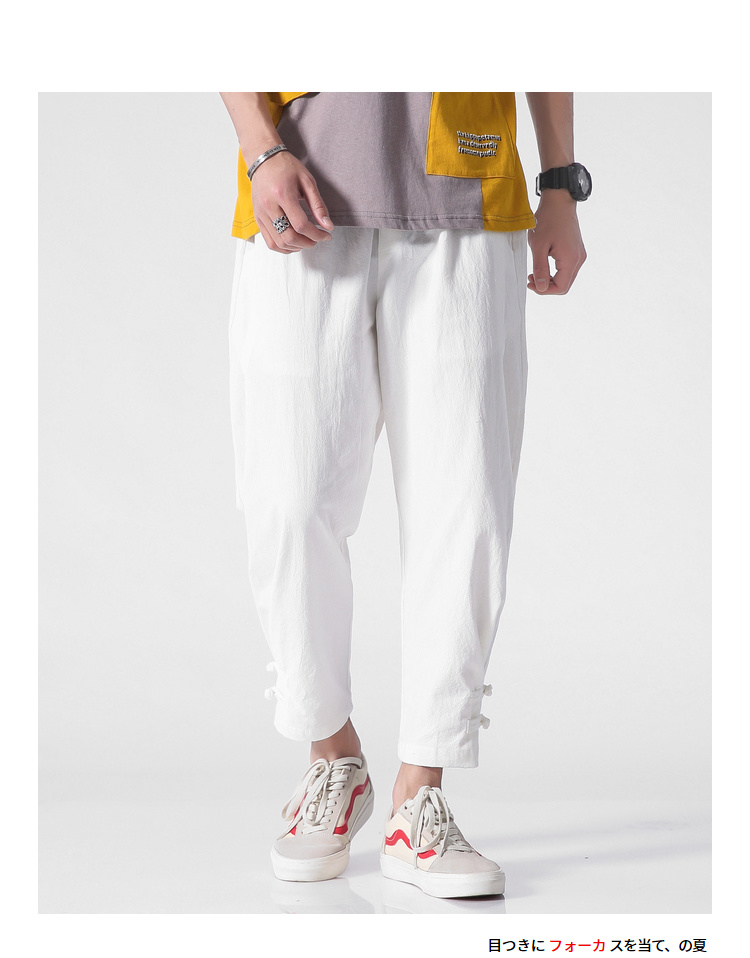 2019夏季日系原創休閑九分褲寬松大碼純色男士薄款夏季潮流褲子