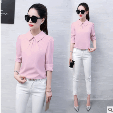 2019秋季新款襯衫女裝韓范百搭長袖韓版上衣打底時尚女雪紡襯衣潮