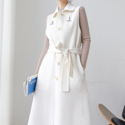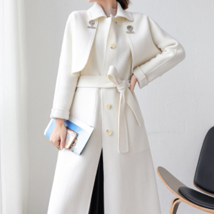 20秋冬新款H家一衣三穿系帶雙面呢大衣 高端兩件套長款毛呢外套女