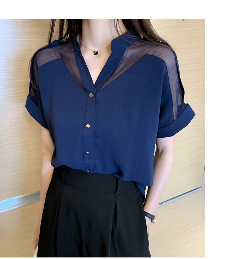 實拍短袖雪紡襯衫2020夏季新款女裝 時尚V領寬松超仙洋氣小衫上衣