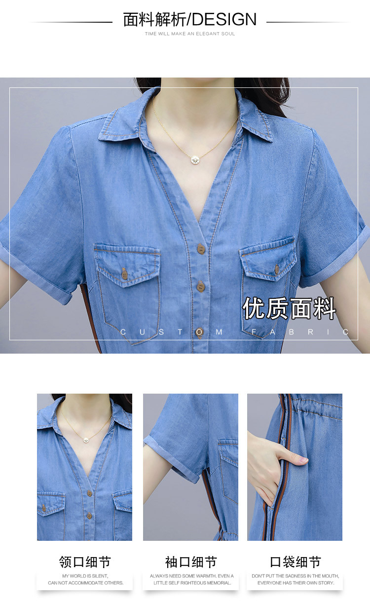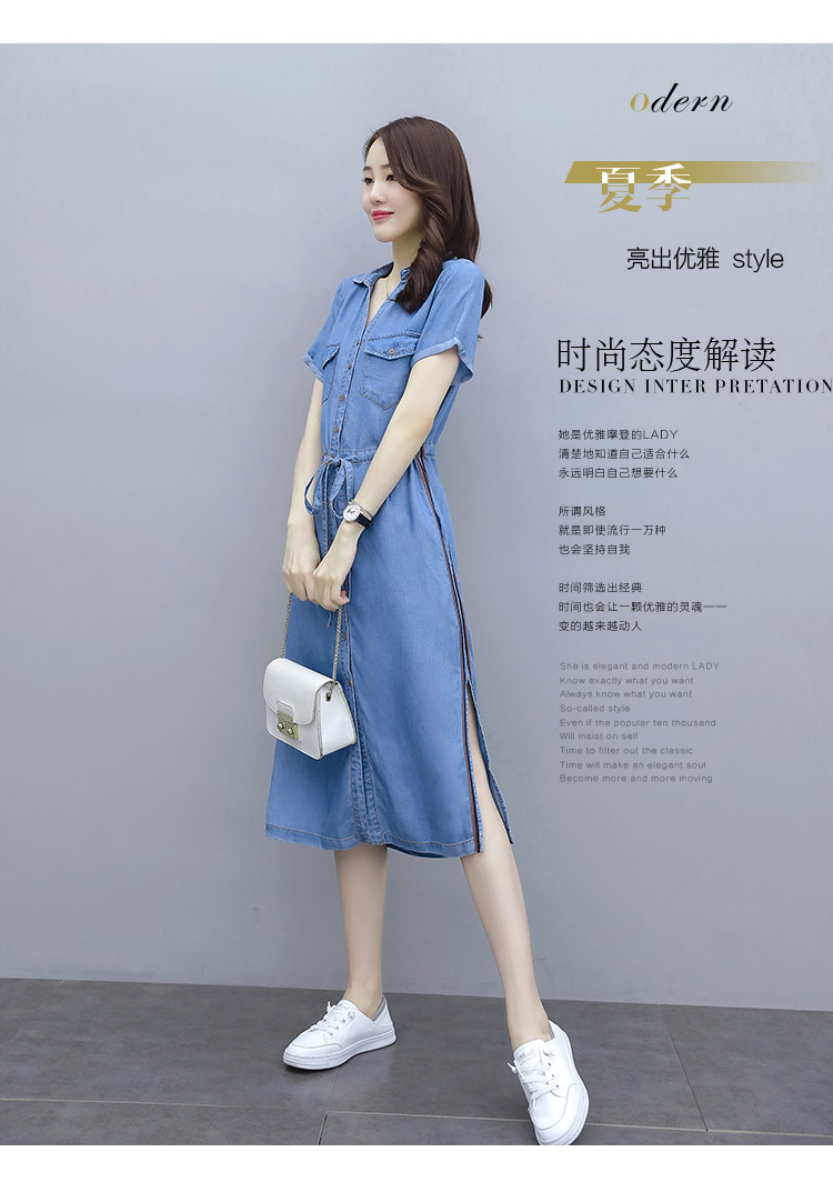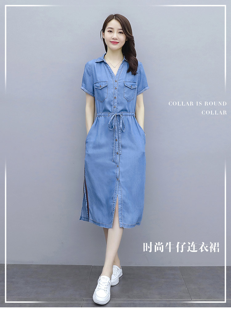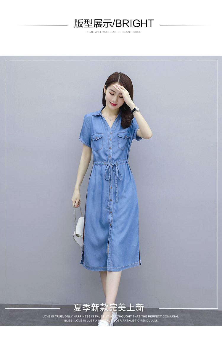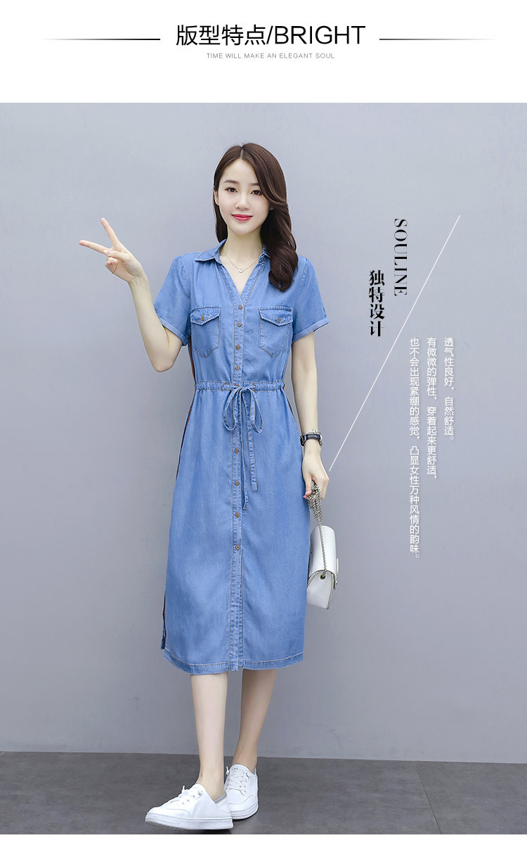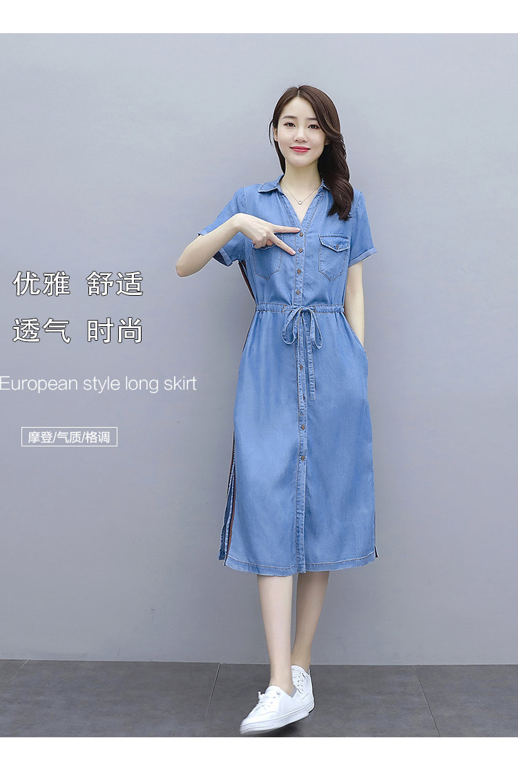 實拍短袖牛仔連衣裙2020夏季新款大碼女裝中長款氣質襯衫休閑裙子