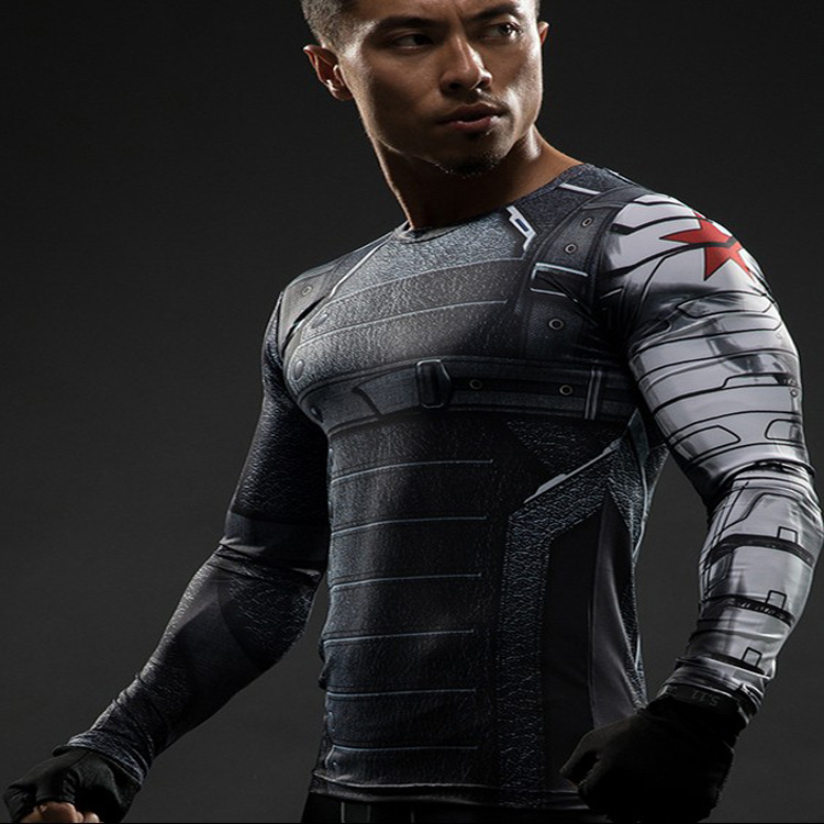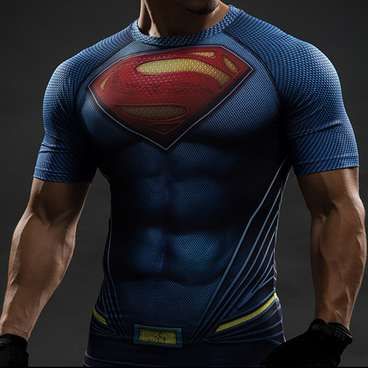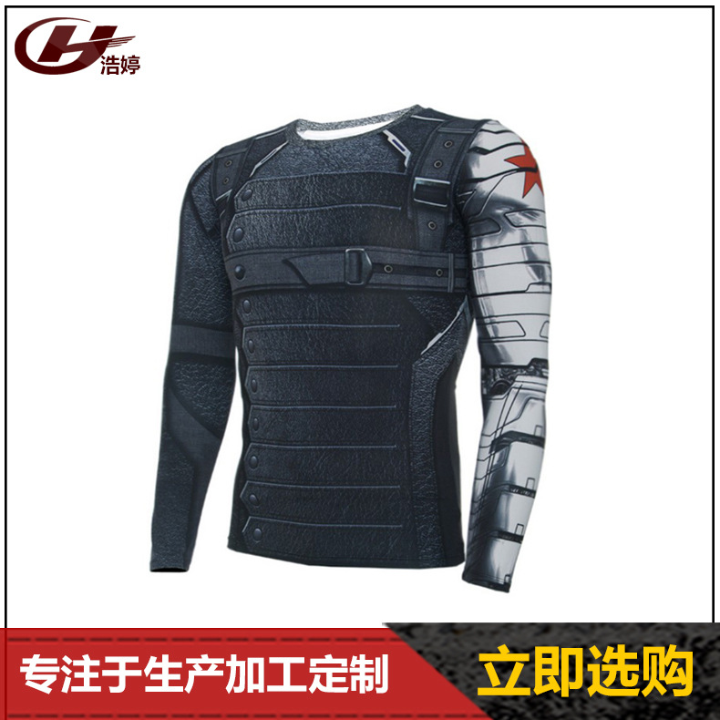 超人英雄系列健身訓練運動長袖 透氣貼身吸汗速干T恤 運動緊身衣