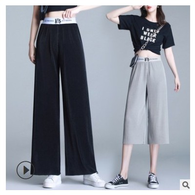 墜感闊腿褲女褲高腰2020新款春秋垂感冰絲薄款寬松拖地褲直筒長褲