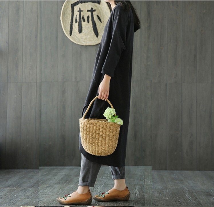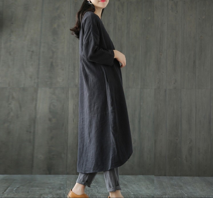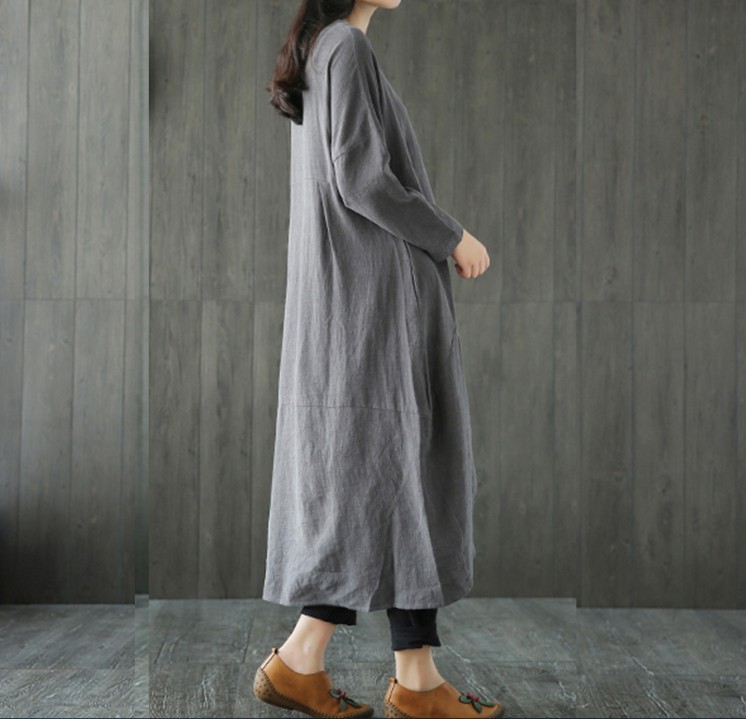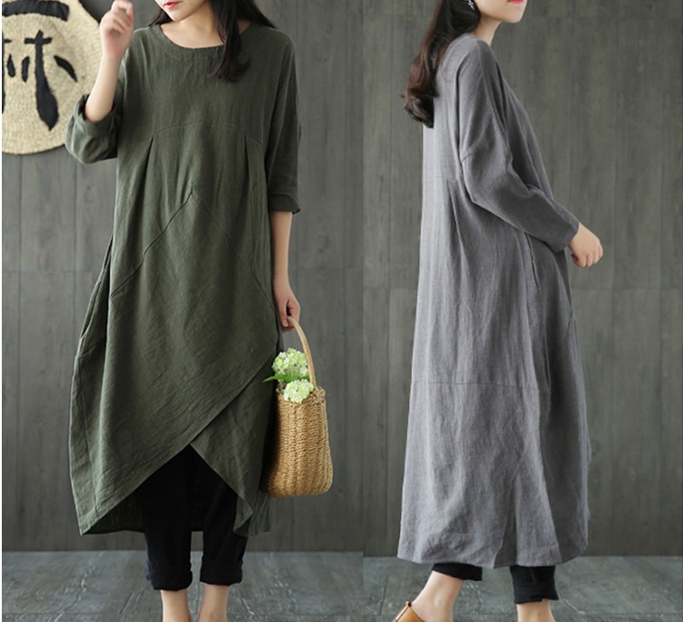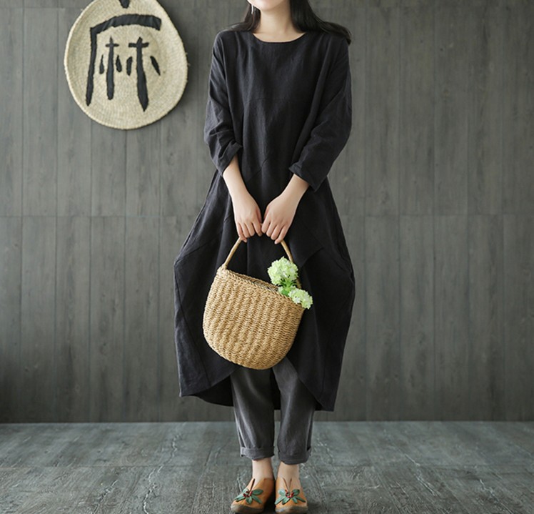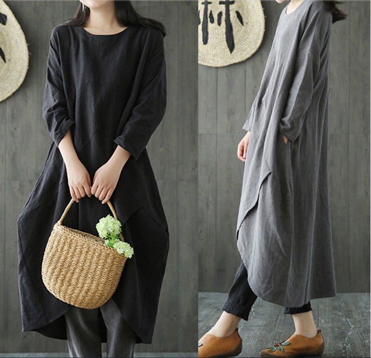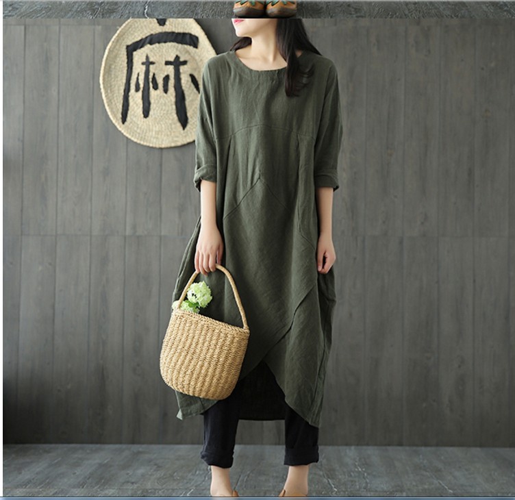 大碼女裝2019新款春夏民族風借肩袖棉麻寬松顯瘦連衣裙